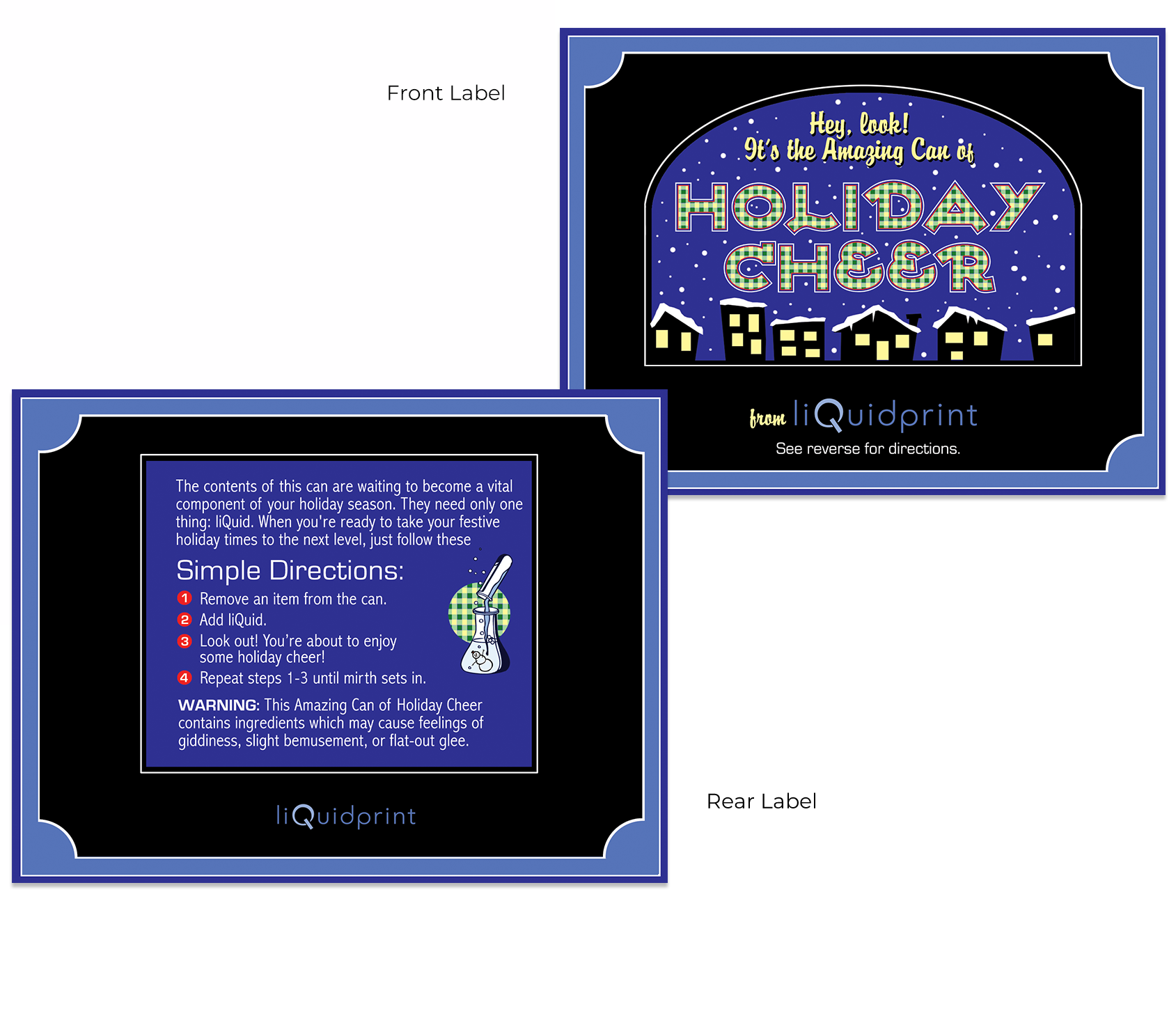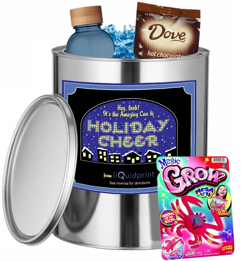 At liQuidprint, a web design company, we gifted our clients a can of holiday items to which you add liQuid.