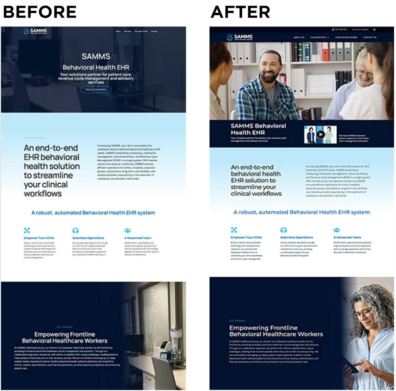 They requested strictly SEO work, but also enhanced the look and feel by adding video in the hero area and more personable photos throughout.