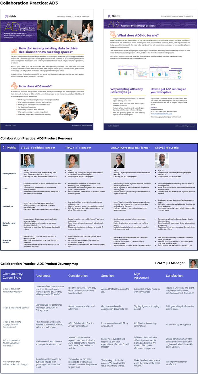 For products and services Netrix launched, such as AD3, I would create journey maps for the optimal understanding of the different audience types. I created the branding, logo, flyers and journey maps below.